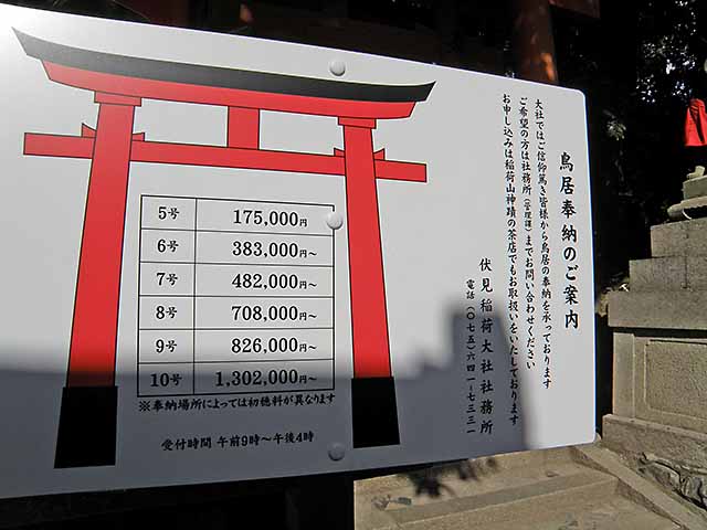 奉納鳥居のお値段があるにょ。
