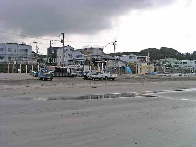 はやくも海の家の建築が始まってますにゃ。